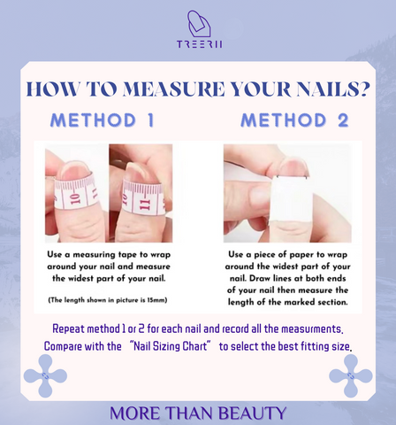 PASO 5: Si lo deseas, retoca y remodela tu manicura Treerii usando la lima (incluida) o un cortaúñas. Consejo: Treerii Nails se puede limar desde cualquier lado, incluida la zona de la cutícula, si desea acortar la longitud de las uñas sin perder el diseño de la punta.