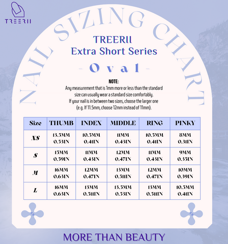 STEP 5: If desired, touch up and reshape your Treerii Manicure using the file (included) or a nail clipper. Tip: Treerii Nails can be filed from any side, including the cuticle area, if you want to shorten the length of the nails without losing the tip design.
